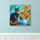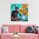 SONNENBLUMEN MIT SCHWARZER KATZE IN BLAUEM TURQUOI LEINWANDDRUCK