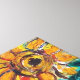 Ausdrucksstarke, skurrile Schwarzkatze, farbenfrohe Sonnenblumen und grüne Blätter in Gelb- und Türkisblau. Künstlerisches und lebendiges Original-Acrylgemälde auf Holzplatte von Bulgan Lumini (c)