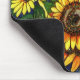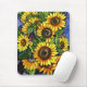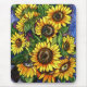 Ein buntes Zeichnen der frischen Sonnenblumen auf einem blauen Hintergrund.