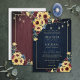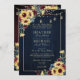 Sonnenblumen Navy Blue Burgundy Wood Floral Weddin Einladung