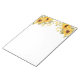 Dieses Notizblock ist in einem klassischen Weiß mit einem schönen Aquarelldruck aus Sonnenblumen dargestellt. Passen Sie dieses Objekt an oder kaufen Sie, wie es ist. Lizenziertes Bild
