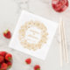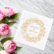 Dieser wunderschöne Blumenkranz, der die Namen des Ehegatten und das Hochzeitstag umgibt, besteht aus schönen Sonnenblumen, zarten Peonies und "vergiss-me-not" Myosotis. Alle bedruckt mit Gold auf diesen atemberaubenden Servietten, perfekt chic für Ihren großen Tag!