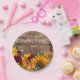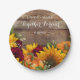 Sonnenblumen, Pumpkin & Rose Hochzeitsfeier Teller. Rustikale Hochzeiten freuen sich! Unsere Sonnenblumen und Rose, die sich an Ihre Wünsche anpassen, sind eine gute Möglichkeit, Ihren Tag zu präsentieren! Mit einem rustikalen Holzfußboden, gelben Sonnenblumen, Kürbissen und bordeauxfarbenen Rose. Text ist für Ihr Party anpassbar. Entsprechende Produkte finden Sie hier: https://www.zazzle.com/collections/rustic_sunflower_and_roses-119858480821565936