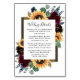 Sonnenblumen-Rose Burgund Hochzeitskarte Tischnummer
