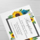 Das Design besticht durch elegante Sonnenblumen, Rose und Gänseblumen mit einer goldgelben, aquamarinen und weißen Farbpalette. Das Design verfügt auch über einen kohlegrauen Rahmen. Sie können die Hintergrundfarbe auf der Vorderseite und zurück in die gewünschte Farbe ändern oder beide Set in Weiß verlassen werden.