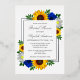 Das Design besticht durch elegante Sonnenblumen, Rose und Gänseblumen mit einer goldgelben, blauen und weißen Farbpalette. Das Design verfügt auch über einen echten Folienrahmen. Sie können die Hintergrundfarbe auf der Vorderseite und zurück in die gewünschte Farbe ändern oder beide Set in Weiß verlassen werden.