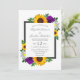 Das Design besticht durch elegante Sonnenblumen, Rose und Gänseblumen mit einer goldgelben, lila und weißen Farbpalette. Das Design verfügt auch über einen kohlegrauen Rahmen. Sie können die Hintergrundfarbe auf der Vorderseite und zurück in die gewünschte Farbe ändern oder beide Set in Weiß verlassen werden.