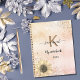 Eine rustikale Rose mit goldfarbenem und rosafarbenem metallischem Hintergrund, verziert mit Imitaten, Glitzer aus Gold und Silber und einer rustikalen, wasserfarbenen Sonnenblume. Personalisieren und fügen Sie ein Jahr, Name, Monogramm Initial und einen Titel. Der Name ist schwarz geschrieben mit einem modernen handgeschriebenen Schriftsatz.