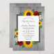Das Design besticht durch elegante Sonnenblumen, Rose und Wildblumen mit einer goldgelben, roten und weißen Farbpalette. Das Design zeichnet sich auch durch einen karkohlegrauen Rahmen aus, der mit einem rustikalen, grauen Holzhintergrund verziert ist