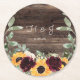 Sonnenblumen-Rose Stallholz-Monogramm-Hochzeit Runder Pappuntersetzer
