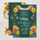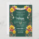 Western charro schöne rustikale Thema für Quinceanera oder Geburtstagsfeier. Dieses Design zeichnet sich durch hellgelbe Sonnenblumen und reiche rote Rosen aus, auf einem anpassbaren smaragdgrünen Hintergrund und rustikalen Western Akzente. Vollständig anpassbar für jede Art von Veranstaltung!