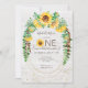 Diese Einladung wird sicher ein Sake! Entworfen mit einem Aquarell-Sonnenblumenmuster, Holzboden und modernen Schriftart. Diese Karten werden bestimmt Ihre Gäste beeindrucken. Feiern Sie ihren ersten Geburtstag stilvoll!