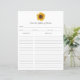 Dieses Rezeptblatt-Design zeichnet sich durch hübsch gestrichene, wasserfarbene Sonnenblumen und Koordinaten mit unserem passenden Kochbuch/Rezeptbinder aus! Klicken Sie auf die Schaltfläche Anpassen, um den Text flexibler zu gestalten. Variationen dieses Designs, verschiedene Papiertypen sowie koordinierende Produkte sind in unserem Shop unter zazzle.com/store/doodlelulu erhältlich. Kontaktieren Sie uns, wenn Sie dieses Design für ein bestimmtes Produkt verwenden möchten, um Ihr eigenes, einzigartiges Passwort zu erstellen! Vielen Dank, dass Sie ein DoodleLulu von 2. Juni Bugs Design gesehen haben!