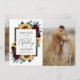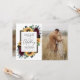 2 Fotovorlage standardmäßig - eine der vorderen und hinteren. Sie können die Rückseite löschen, wenn Sie nur ein Foto gewollt haben und einen schlichten, weißen Hintergrund haben oder einen Hintergrund Ihrer Wahl hinzufügen. Das Design besticht durch elegante Aquarelltöne, Rose, Wildblumen und Sonnenblumen in verschiedenen Bordeaux-, Marineblau- und mehr über einen Kranz Eukalyptusgrün. Im Design befindet sich auch ein Holzrahmen unter dem Kranz. Entsprechende Sammlung gefunden hier: https://www.zazzle.com/collections/sunflower_and_roses_burgundy_wedding_invitations-119675824301740398