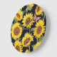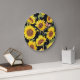 Sonnenblumen, Schmetterlinge, Aquarellschwarz Große Wanduhr