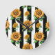 Sonnenblumen Schwarz-weiße Streifen Runde Wanduhr