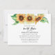 Hübsche Wasserfarbe Bridal Dusche Einladung mit eleganter Sonnenblume und Eukalyptusbouquet. Sie können die Hintergrundfarbe einfach ändern, indem Sie unser "Design-Tool" verwenden, um Ihrem Farbschema zu entsprechen