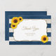 Rustikale Hochzeit danke Karte mit Sonnenblumen und marineblau Streifen. Ideal für Hochzeiten in der Sommerlandschaft und andere Vintage Anlässe.