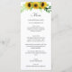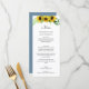 Die Speisekarte mit modernem und romantischem Blumendesign mit gelben Aquarellsonnenblumen und einem blauen Rücken mit weißer Front.
