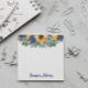 Personalisierte Post-it-Noten mit einer blumengeschmückten Anordnung von Sonnenblumen, Blumen, Grün und Beeren und Ihrem Namen in einer kühnen, dunkelblauen Kalligraphie-Schrift. Blumenpost-it-Notizen personalisiert mit Ihrem Namen in blau.