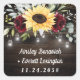 Sonnenblumen und Burgunder Rote Rose Rustikale Hoc Quadratischer Aufkleber