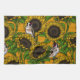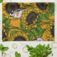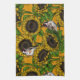 Sonnenblumen und Goldschmuck auf Orange Geschirrtuch