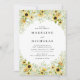 Elegante, blumengeschmückte Einladungen mit Ihren Namen und Hochzeitsdetails in der Mitte mit einem oberen und unteren Rand von Aquarellfarben Sonnenblumen & üppiges Grün. Die Sonnenblumenhochzeit lädt zu einem soliden grünen Hintergrund zurück. Entworfen, um sich mit unserer Kollektion Watercolor Sonnenblumen & Grünpflanzen abzustimmen.