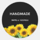 Sonnenblumen und handgefertigter Text auf schwarz Runder Aufkleber