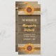 Hochzeitsfeier und Hochzeitsfeierprogramme mit Sonnenblumenblumen und alten rustikalen Holzhintergrund.