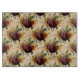 Ein reich detailliertes Muster goldener Sonnenblumen, brauner Ranunculus, grüne Farnfronten, pussy Weidenfäden auf einem monochromen, damasken Hintergrund