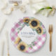 Rustikale personalisierte Teller für Paarduschen, Brautparty, Polterabend oder I Do GRILLEN mit einem Country-Design-Boarder mit Aquarellfarben-Sonnenblumen und Grünpflanzen mit einem rosa Gingham-Schachbrett. Personalisieren Sie mit Ihren Namen und Datum. Weitere Designs finden Sie unter www.zazzle.com/vginvites
