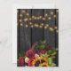 Rustikales Country Brautparty Stilvorlage auf dunkelbraunem Stallholzhintergrund mit großen goldgelben Sonnenblumen und roten bordeauxfarbenen Rose Bouquets, Saiten aus bunten Lichtern und einem Imitat goldenen Typografie-Skript. +++++++++++++++ Einfach mit Ihren Daten personalisieren! Sie können wählen, um es anzupassen weitere sich ändernde Schriftartes und Farben der Schrift. ++++++++++++++ Die Einladung ist für Gartengarten/rustikale Hinterhoflandschaft Vintage Brunch-/Grill-Brautpartys geeignet.