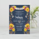 Western charro schöne rustikale Thema für Quinceanera oder Geburtstagsfeier. Dieses Design ist mit hellgelben Sonnenblumen und reichen rote Rosen, auf einem anpassbaren marineblauen Hintergrund und rustikalen Western Akzente. Vollständig anpassbar für jede Art von Veranstaltung!