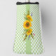 Dieses Landhaus-Design hat ein schönes und hellgelbes Aquarell Sonnenblumenbouquet und pastellgrün und weiß Schachbrett.