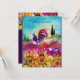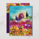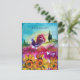Farbenfrohe, skurrile toskanische Landschaft mit Blume und schwarzem Hahn in Gelb, Rot Fuchsia, Grün, lila, Blau. Akryles Gemälde auf Leinwand.Cool, künstlerisches Design für Sommerferien, Wiedersehen, Jubiläum, Geburtstagsfeiern oder für jede Veranstaltung, die Sie sich wünschen !