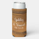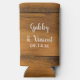 Behalt deine Getränkedosen cool auf deinem informellen und dennoch eleganten Bauernhof oder Ranch-Stil Brautparty oder Ehe-Empfang mit der charmanten Sonnenblume und Horseshoe Western Wedding Seltzer Can Cooler. Erstellen Sie ein freundliches Gastgeschenk, wenn Sie es mit dem Namen des frisch verheirateten Ehepaares und dem Datum personalisieren. Diese lässige und klassische Hochzeit zum Thema Pferde kann kühler sein mit einem malerischen Blumenfoto einer gelben Sonnenblumenblüte, rostigem Hufeisen und weißem Brautschleier mit einem rustikalen braunen Holzhintergrund.