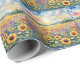 Aquarellfarbene Sonnenblumen und Wildblumen in einem Feld mit einem Berghang.