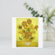 Sonnenblumen Vincent van Gogh. Stilles Leben auf einem gelben Hintergrund. Ein heller Blumenstrauß steht in einer Vase. Reproduktion berühmter Kunstbilder im öffentlichen Bereich.