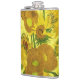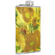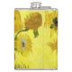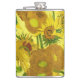 Sonnenblumen Vincent van Gogh. Stilles Leben auf einem gelben Hintergrund. Ein heller Blumenstrauß steht in einer Vase. Reproduktion berühmter Kunstbilder im öffentlichen Bereich.