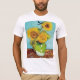 Sonnenblumen (1888) Vincent van Gogh. Stilles Leben auf blauem Hintergrund. Ein heller Blumenstrauß steht in einer Vase. Reproduktion berühmter Kunstbilder im öffentlichen Bereich.