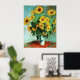 An den Tagen konnte Claude Monet nicht nach draußen gehen und malen, er bleibe drinnen und malte Stillleben. Er war immer begeistert von der Außenmalerei und dem "Plein-Air"-Gemälde, um den Lichtwechsel im Freien zu untersuchen. Aber wenn er seine Sonnenblumen gemalt hat, muss er das Innere des Gebäudes mitgebracht haben, da sie mit der Energie des Windes und den Farben des Außenlichts gefüllt sind. Es ist nicht bekannt, ob Van Gogh jemals Monets "Sonnenblumen" Gemälde gesehen hat. In einer Woche hatte Van Gogh mit großer Begeisterung vier Sonnenblumengemälde gemalt. Van Gogh studierte gerne die Harmonie der Blume mit den Hintergrundfarben. Gelb mag Van Gogh's Lieblingsfarbe gewesen sein, weil es ihm half, sich fröhlicher und weniger depressiv zu fühlen. Gaugin, ein Freund von Van Gogh, betrachtete Van Gogh's Sonnenblumen BESSER als Claude Monets Sonnenblumen! Vielleicht können wir das beurteilen!