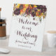 Sonnenblume und bordeauxfarbene Pfirsiche Herzlich willkommen auf unserem Tafelschild mit einem glitzernden goldenen Spritzer mit Ihren Namen und Datum am Ende.