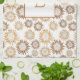 Ein schick weißer Hintergrund. Die Einrichtung ist mit einer goldenen Sonnenblume geschmückt. Personalisieren Sie Ihre Monogramm-Initial und fügen Sie sie hinzu.