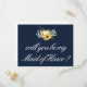 Diese Karte hat Aquarellfarben bemalte Sonnenblumen und eine elegante marineblaue Farbe. Text und Farben können personalisiert sein.