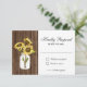 Rustikale Sonnenblumen Holz Mason Jar RSVP Card. Schöne rustikale Glaskeramikkarte mit Holzhintergrund und gelben orangefarbenen Sonnenblumen. Ideal für Ihr Land, Ihren Sommer oder Ihre Hochzeit im Herbst