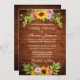 Rustikales Holz, Aquarellblume mit Rose, Peonies und Grünpflanzen Einladung zur Hochzeit - Foto zurück