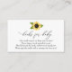 Eine Reservierungskarte für Babydusche. Mit Sonnenblumen und Gedicht: "EINE KLEINE ANFRAGE, HOFFEN WIR NICHT ZU SCHWIERIG BITTE BRINGEN SIE EIN BUCH ANSTATT EINER KARTE, SIE WERDEN DAS BUCH, GUT LIEBT ODER BRAND NEUE BITTE UNTERZEICHNEN SIE DIE INSEL MIT EINER NACHRICHT VON IHNEN!"