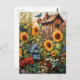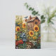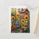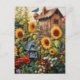Sonnenblumengarten 3 Vogelhäuser Blaue Vögel Postkarte