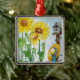 Original Aquarellmalerei von Sandra Gale mit einer Gruppe von Sonnenblumen und einer Gartentasche, Hut und Schaufel. Großartiges Design für Gärtner aller Art und ein perfektes Bild des Sommers!