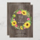 Sonnenblumenhochzeit mit Kranz auf Holzboden Einladung